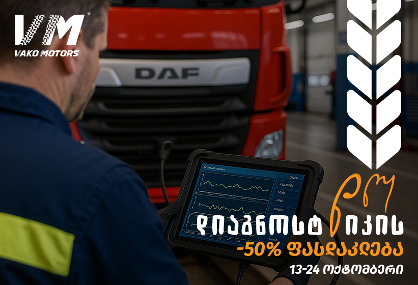 ისარგებლე 50%-იანი ფასდაკლებით სატვირთო ავტომობილის დიაგნოსტიკაზე!13-24 ოქტომბრის ჩათვლით, ვაკო მოტორსის წიწამურისა და ორხევის ფილიალში ისარგებლე დიაგნოსტიკის დღის შეთავაზებით!მოდი ვაკო მოტორსში, გაია..